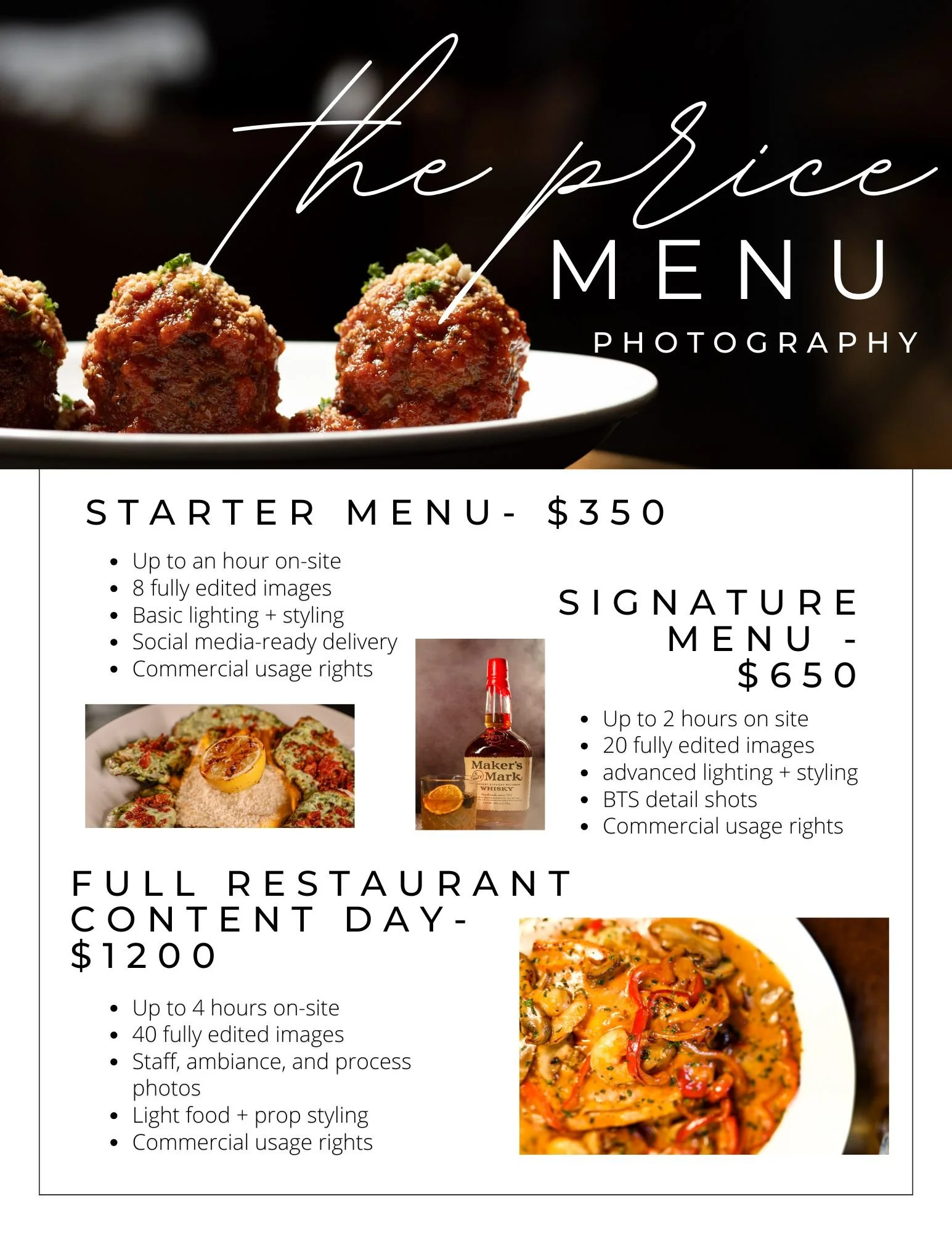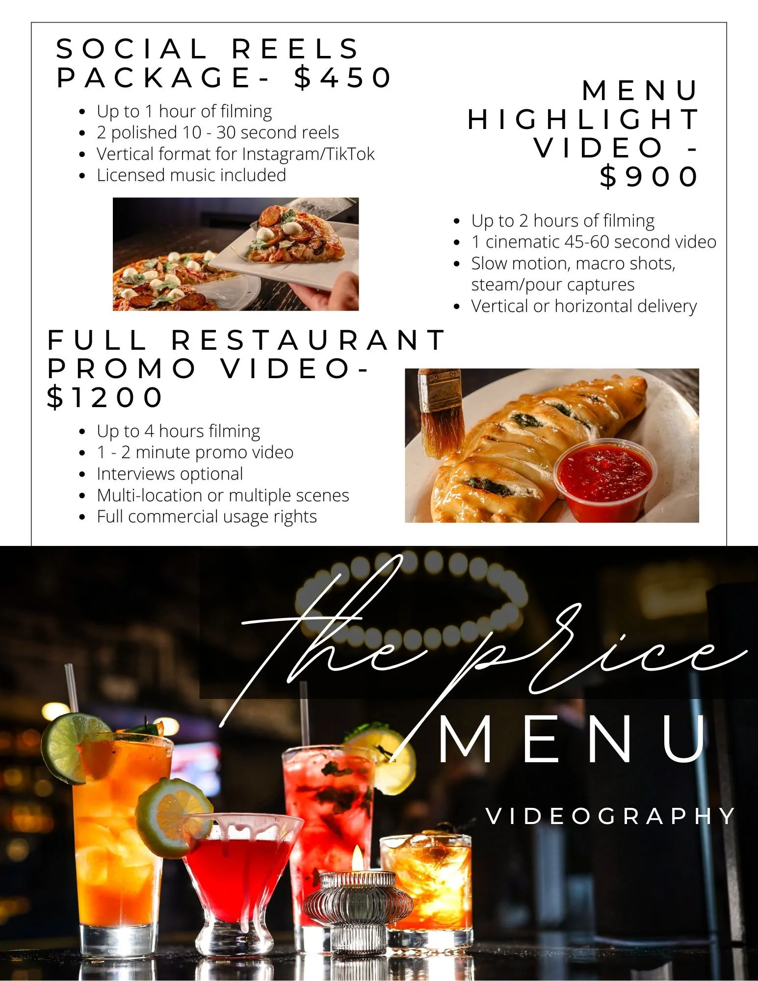 Restaurant Packages RESTAURANT APPLICATION Photography Packages Videography Packages We partner with: