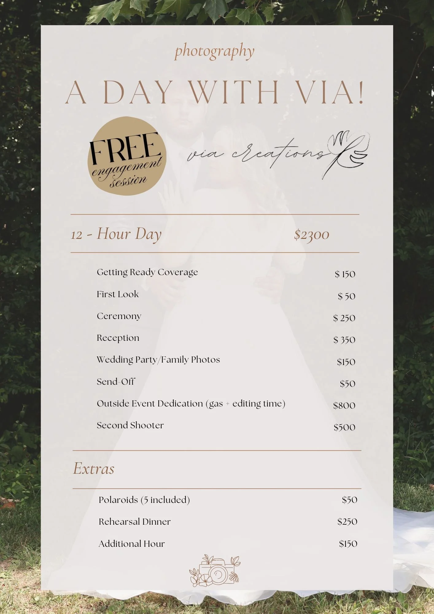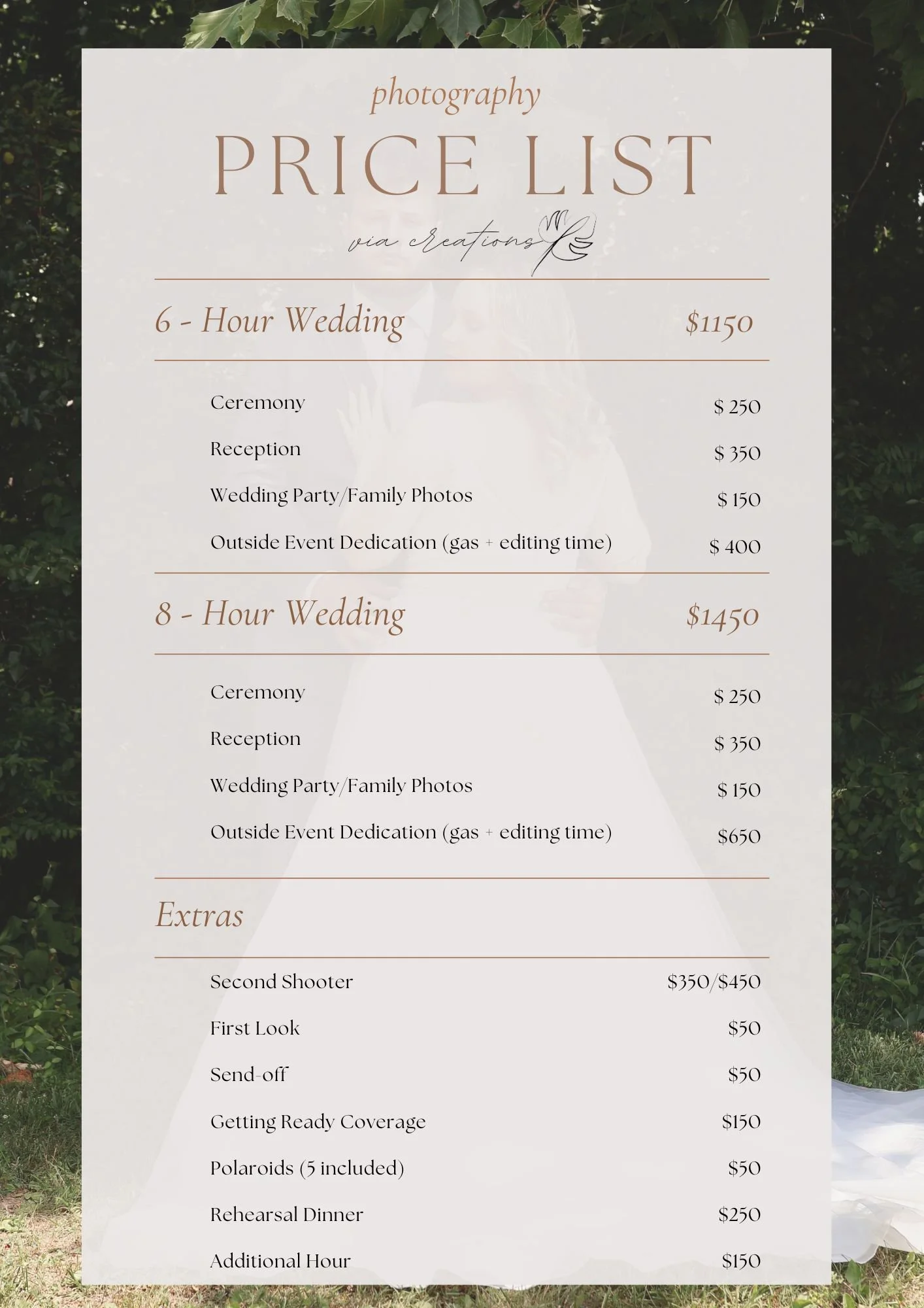 Wedding Packages WEDDING APPLICATION WEDDING APPLICATION Photography Packages - 6 hour and 8 hour Photography Package - Full Day Coverage Videography Packages -6 hour and 8 hour